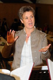 studierte nach dem Abitur Chorleitung und Gesang in Darmstadt und Mainz bei Prof. Mayer, Prof. Mautschka, Prof. Desch und Dagmar Lindenberg. Parallel hierzu absolvierte Sie den LehrgangKinderchorleitung an der Bundesakademie Trossingen bei Prof. Alois Ickstadt, Gerhard Roth und Kurt Hofbauer. Seit 1992 ist sie als freiberufliche Musikerin tätig und arbeitet als Chorleiterin, Dozentin, Sopranistin, Chor und Vocal Coach mit namhaften Größen zusammen. So stand sie etwa mit Joy Fleming auf der Bühne und machte sich mit dem Kabarettensemble “Weibsbilder” einen Namen in der Kleinkunstszene. Stilsicher und vielfältig konzertierte sie als lyrischer Sopran mit einem Soloprogramm mit Christoph Utz am Klavier.